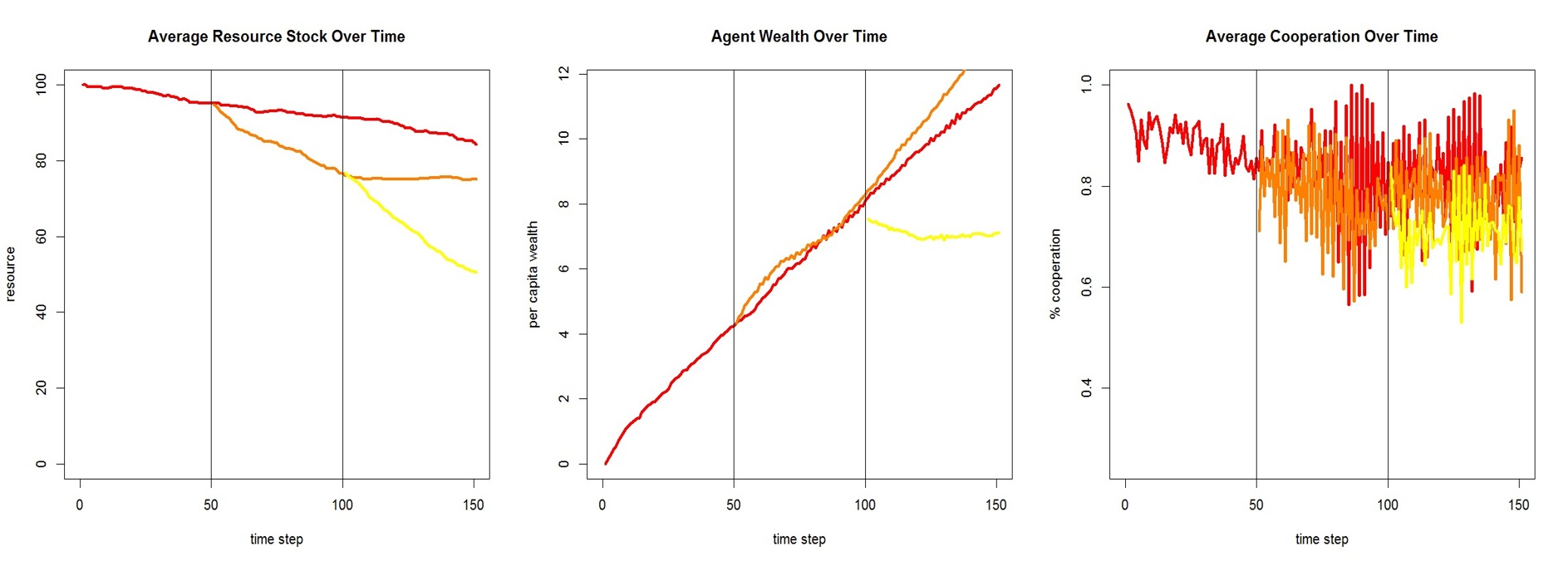 Time discounting – the degree to which individuals value current more than future resources – is an important component of natural resource conservation. As a response to climate change impacts in island communities, such as sea level rise, discounting the future can be a rational response due to increased stress on natural resources and uncertainty about whether future generations will have the same access to the same resources. By incorporating systematic responses of discount rates into models of resource conservation, realistic expectations of future human responses to climate change and associated resource stress may be developed. This paper illustrates the importance of time discounting through a theoretical agent-based model of resource use in island communities. A discount rate change can dramatically change projections about future migration and community-based conservation efforts. Our simulation results show that an increase in discount rates due to a credible information shock about future climate change impacts is likely to speed resource depletion. The negative impacts of climate change are therefore likely to be underestimated if changes in discount rates and emerging migration patterns are not taken into account.