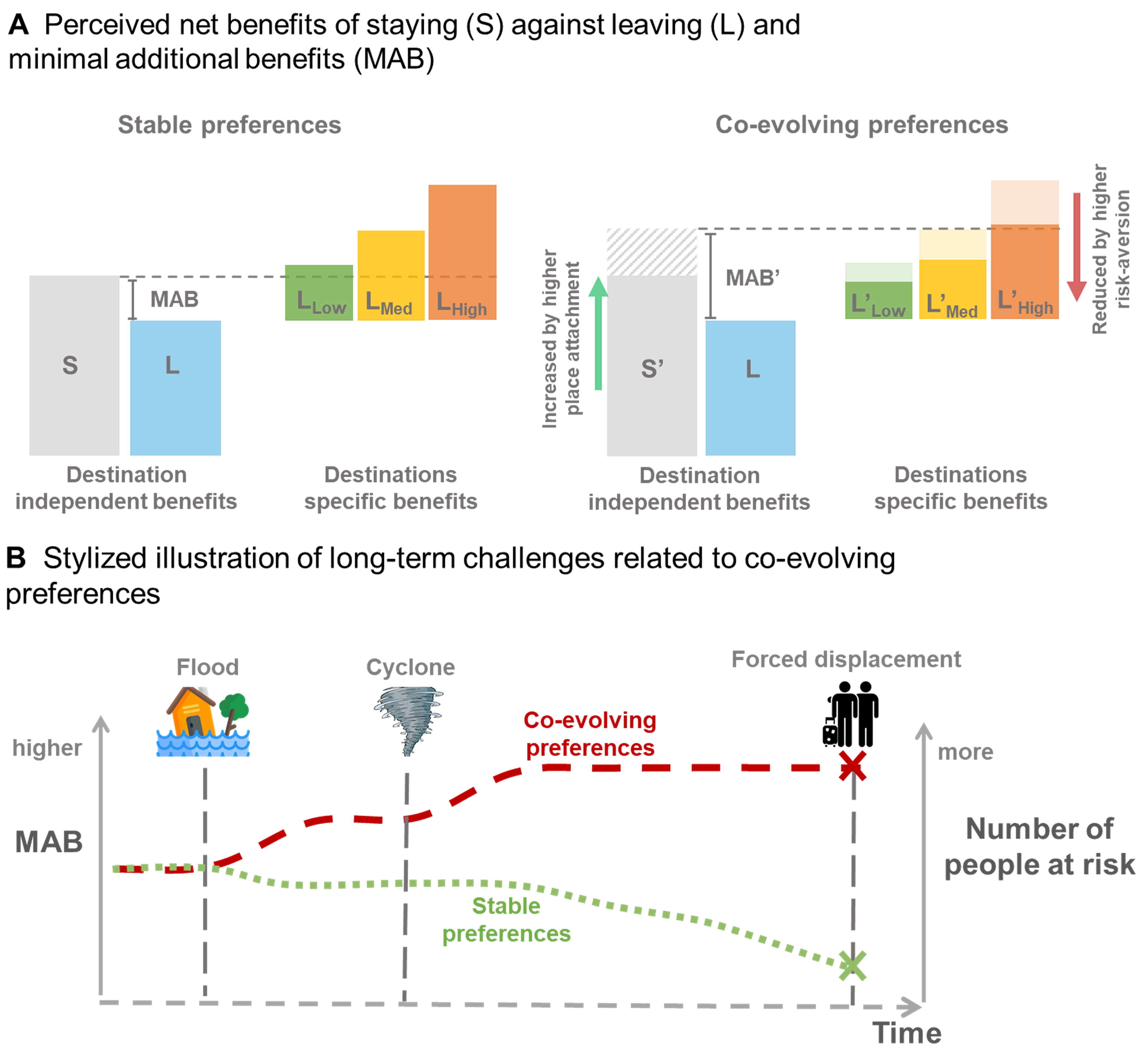 Climate-related hazards increase risk aversion, place attachment and migration aspiration